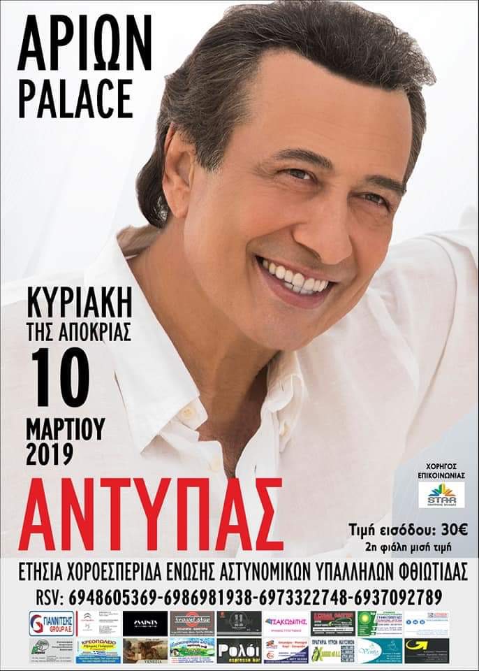 Η Ένωση Αστυνομικών Υπαλλήλων Φθιώτιδας σας προσκαλεί στην ετήσια χοροεσπερίδα που διοργανώνει το βράδυ της Κυριακής 10 Μαρτίου 2019.